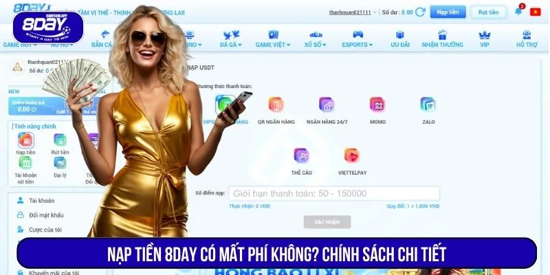 Nạp tiền 8DAY có mất phí không? Chính sách phí nạp tiền theo từng phương thức